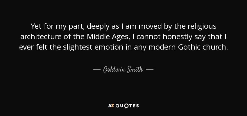 Yet for my part, deeply as I am moved by the religious architecture of the Middle Ages, I cannot honestly say that I ever felt the slightest emotion in any modern Gothic church.