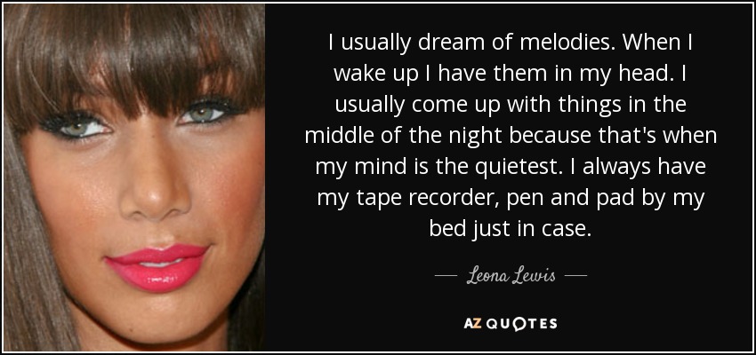 I usually dream of melodies. When I wake up I have them in my head. I usually come up with things in the middle of the night because that's when my mind is the quietest. I always have my tape recorder, pen and pad by my bed just in case.