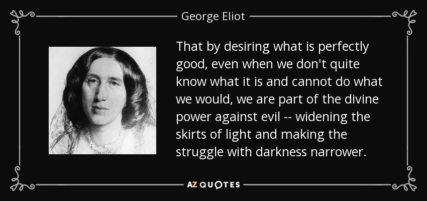 That by desiring what is perfectly good, even when we don't quite know what it is and cannot do what we would, we are part of the divine power against evil -- widening the skirts of light and making the struggle with darkness narrower.