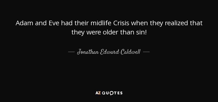 Adam and Eve had their midlife Crisis when they realized that they were older than sin!