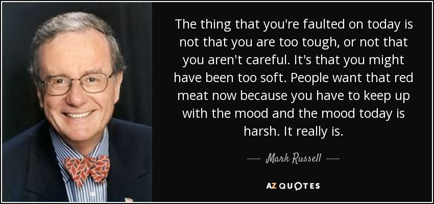 The thing that you're faulted on today is not that you are too tough, or not that you aren't careful. It's that you might have been too soft. People want that red meat now because you have to keep up with the mood and the mood today is harsh. It really is.
