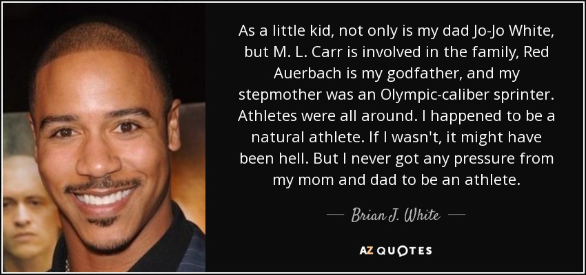 As a little kid, not only is my dad Jo-Jo White, but M. L. Carr is involved in the family, Red Auerbach is my godfather, and my stepmother was an Olympic-caliber sprinter. Athletes were all around. I happened to be a natural athlete. If I wasn't, it might have been hell. But I never got any pressure from my mom and dad to be an athlete.