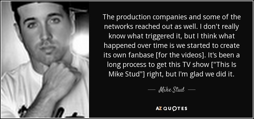 The production companies and some of the networks reached out as well. I don't really know what triggered it, but I think what happened over time is we started to create its own fanbase [for the videos]. It's been a long process to get this TV show ["This Is Mike Stud"] right, but I'm glad we did it.