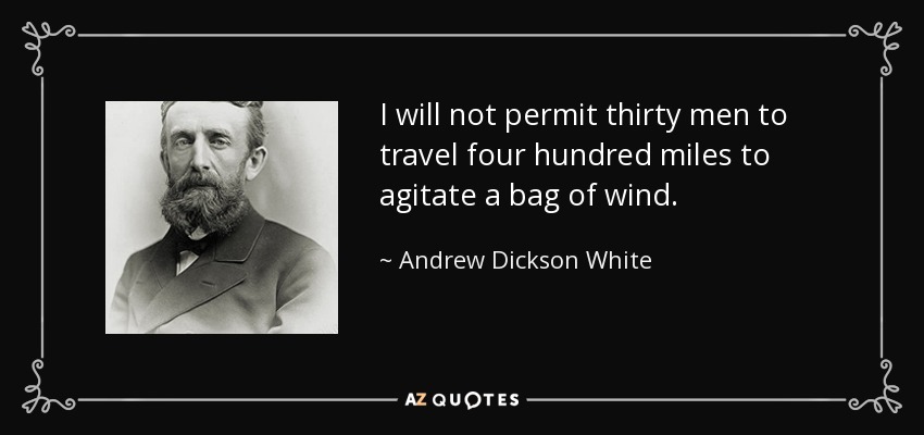 I will not permit thirty men to travel four hundred miles to agitate a bag of wind.