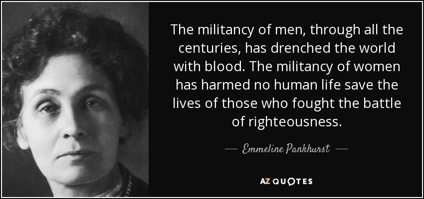 The militancy of men, through all the centuries, has drenched the world with blood. The militancy of women has harmed no human life save the lives of those who fought the battle of righteousness.