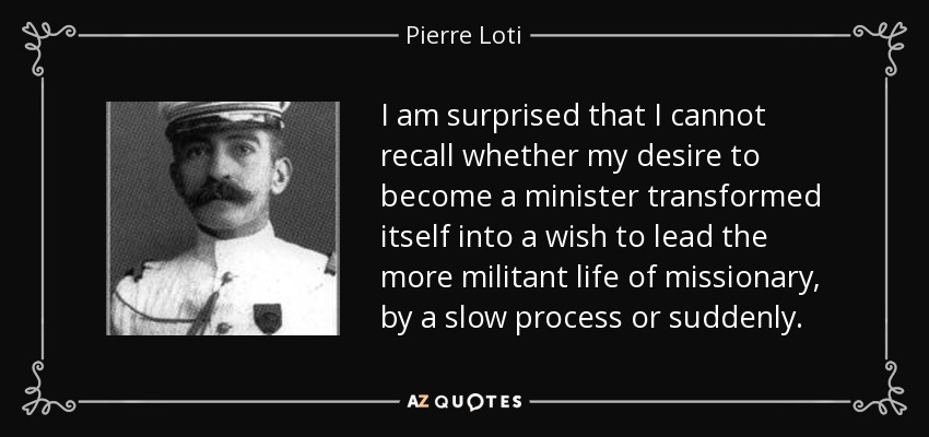 I am surprised that I cannot recall whether my desire to become a minister transformed itself into a wish to lead the more militant life of missionary, by a slow process or suddenly.
