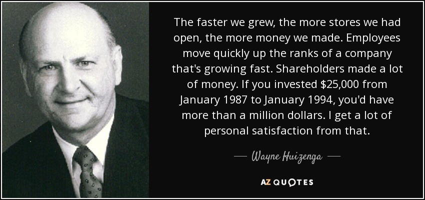 The faster we grew, the more stores we had open, the more money we made. Employees move quickly up the ranks of a company that's growing fast. Shareholders made a lot of money. If you invested $25,000 from January 1987 to January 1994, you'd have more than a million dollars. I get a lot of personal satisfaction from that.