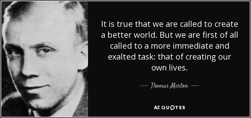 It is true that we are called to create a better world. But we are first of all called to a more immediate and exalted task: that of creating our own lives.