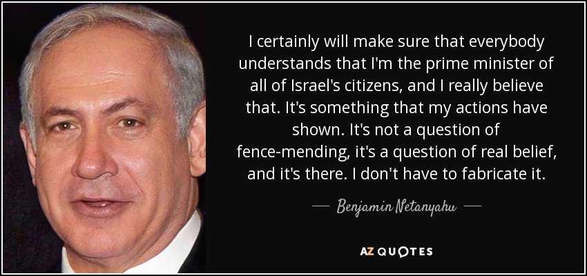 I certainly will make sure that everybody understands that I'm the prime minister of all of Israel's citizens, and I really believe that. It's something that my actions have shown. It's not a question of fence-mending, it's a question of real belief, and it's there. I don't have to fabricate it.