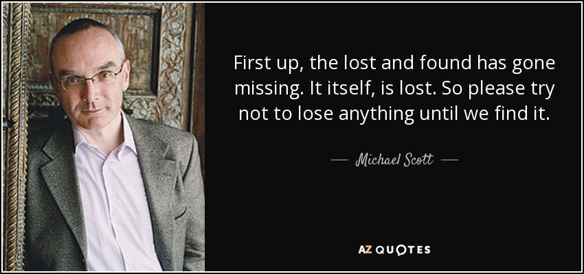 First up, the lost and found has gone missing. It itself, is lost. So please try not to lose anything until we find it.