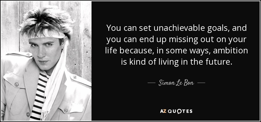 You can set unachievable goals, and you can end up missing out on your life because, in some ways, ambition is kind of living in the future.