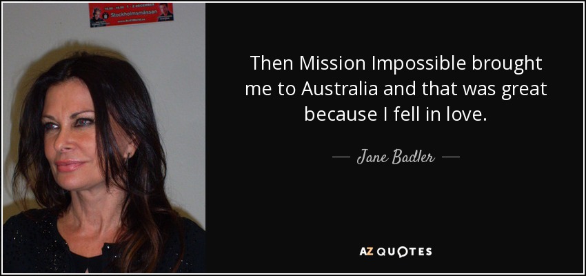 Then Mission Impossible brought me to Australia and that was great because I fell in love.