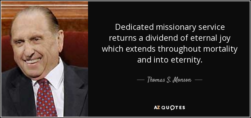 Dedicated missionary service returns a dividend of eternal joy which extends throughout mortality and into eternity.