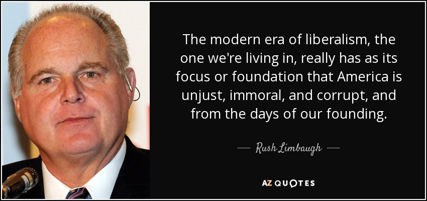 The modern era of liberalism, the one we're living in, really has as its focus or foundation that America is unjust, immoral, and corrupt, and from the days of our founding.