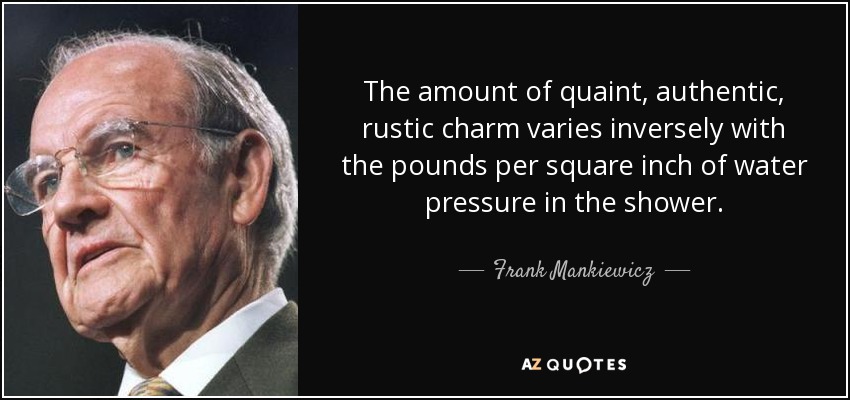 The amount of quaint, authentic, rustic charm varies inversely with the pounds per square inch of water pressure in the shower.