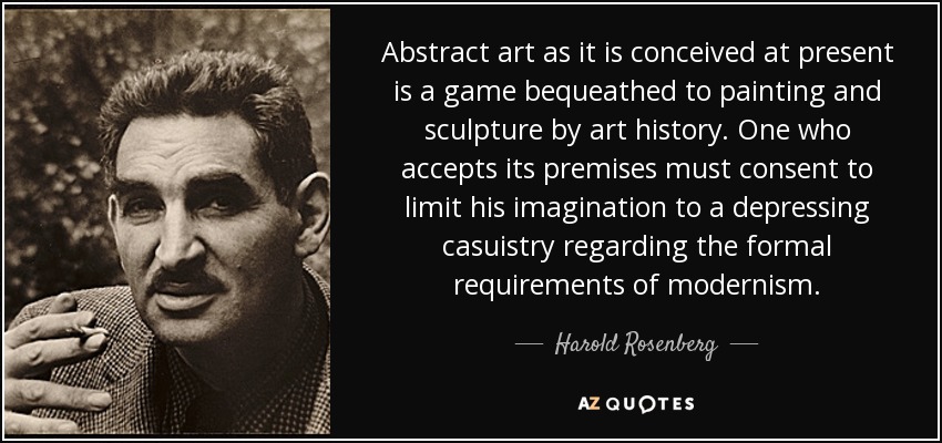 Abstract art as it is conceived at present is a game bequeathed to painting and sculpture by art history. One who accepts its premises must consent to limit his imagination to a depressing casuistry regarding the formal requirements of modernism.