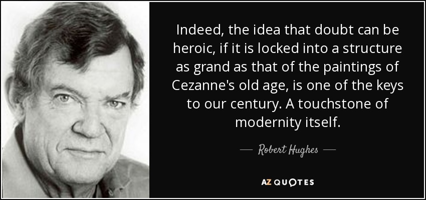 Indeed, the idea that doubt can be heroic, if it is locked into a structure as grand as that of the paintings of Cezanne's old age, is one of the keys to our century. A touchstone of modernity itself.
