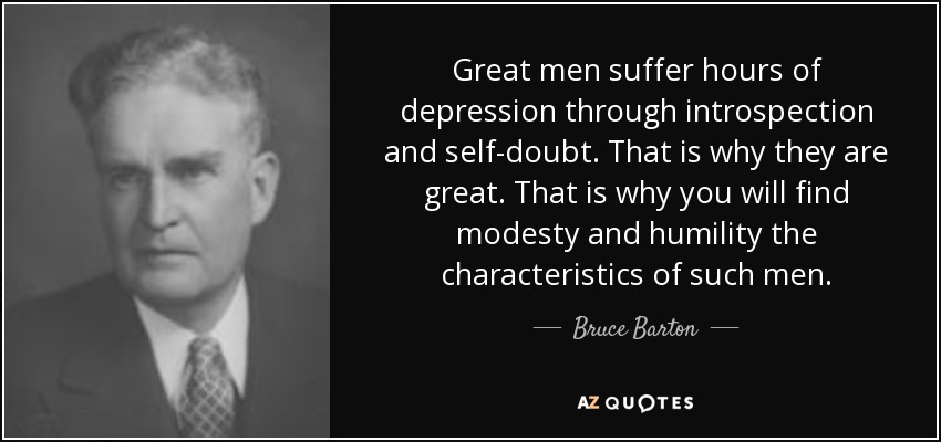 Great men suffer hours of depression through introspection and self-doubt. That is why they are great. That is why you will find modesty and humility the characteristics of such men.