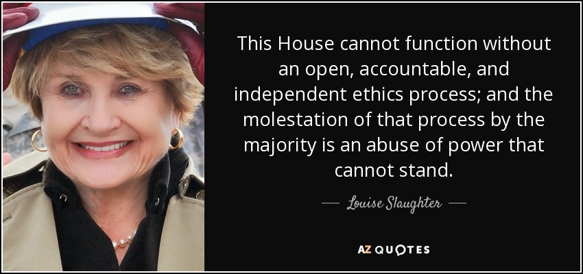This House cannot function without an open, accountable, and independent ethics process; and the molestation of that process by the majority is an abuse of power that cannot stand.