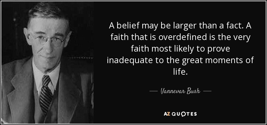 A belief may be larger than a fact. A faith that is overdefined is the very faith most likely to prove inadequate to the great moments of life.