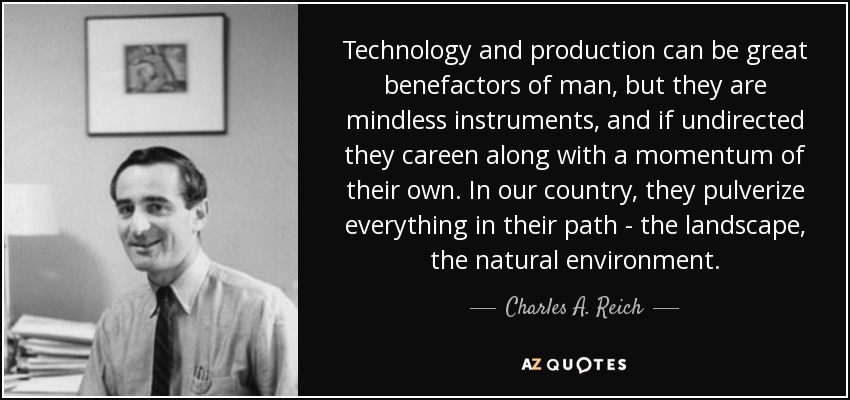 Technology and production can be great benefactors of man, but they are mindless instruments, and if undirected they careen along with a momentum of their own. In our country, they pulverize everything in their path - the landscape, the natural environment.