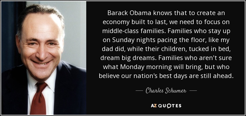 Barack Obama knows that to create an economy built to last, we need to focus on middle-class families. Families who stay up on Sunday nights pacing the floor, like my dad did, while their children, tucked in bed, dream big dreams. Families who aren't sure what Monday morning will bring, but who believe our nation's best days are still ahead.