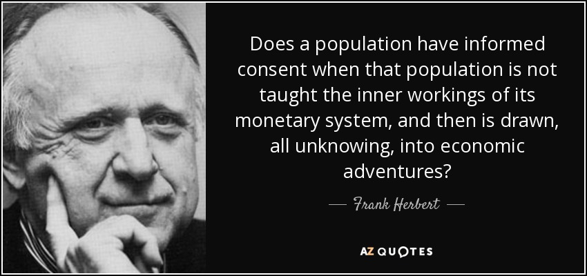 Does a population have informed consent when that population is not taught the inner workings of its monetary system, and then is drawn, all unknowing, into economic adventures?