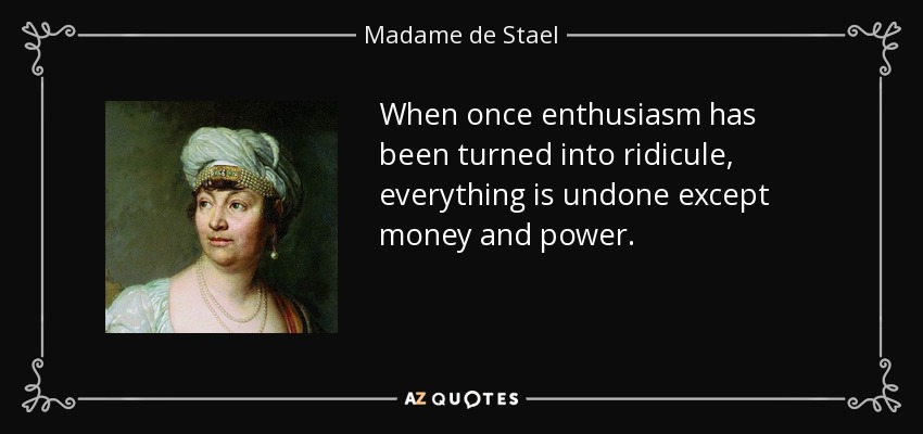 When once enthusiasm has been turned into ridicule, everything is undone except money and power.