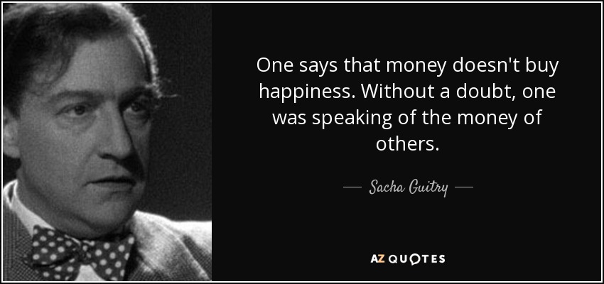 One says that money doesn't buy happiness. Without a doubt, one was speaking of the money of others.