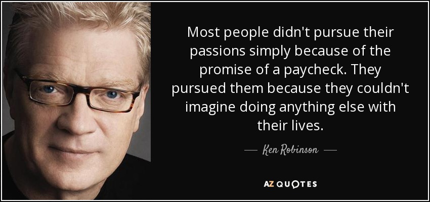 Most people didn't pursue their passions simply because of the promise of a paycheck. They pursued them because they couldn't imagine doing anything else with their lives.
