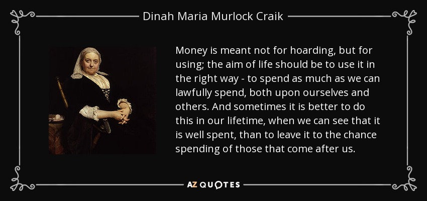 Money is meant not for hoarding, but for using; the aim of life should be to use it in the right way - to spend as much as we can lawfully spend, both upon ourselves and others. And sometimes it is better to do this in our lifetime, when we can see that it is well spent, than to leave it to the chance spending of those that come after us.