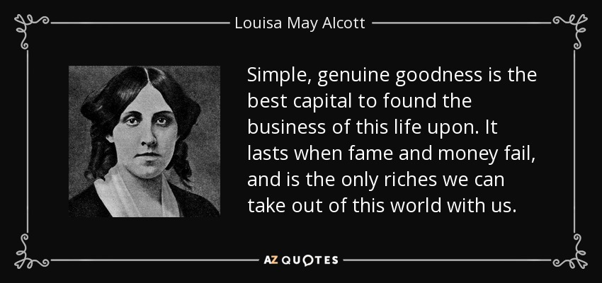 Simple, genuine goodness is the best capital to found the business of this life upon. It lasts when fame and money fail, and is the only riches we can take out of this world with us.