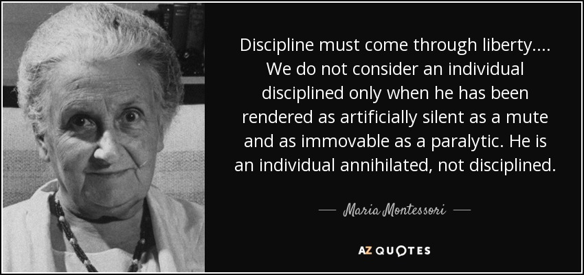 Discipline must come through liberty. . . . We do not consider an individual disciplined only when he has been rendered as artificially silent as a mute and as immovable as a paralytic. He is an individual annihilated, not disciplined.