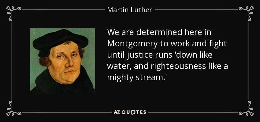 We are determined here in Montgomery to work and fight until justice runs 'down like water, and righteousness like a mighty stream.'