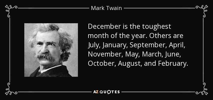 December is the toughest month of the year. Others are July, January, September, April, November, May, March, June, October, August, and February.