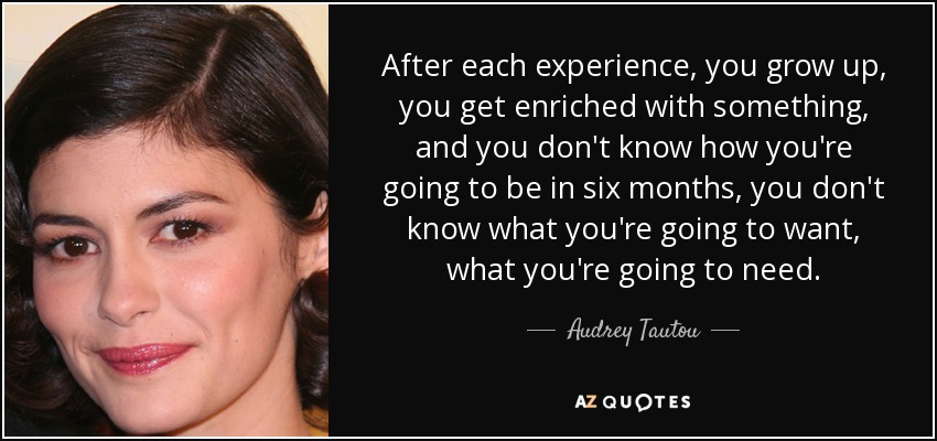 After each experience, you grow up, you get enriched with something, and you don't know how you're going to be in six months, you don't know what you're going to want, what you're going to need.