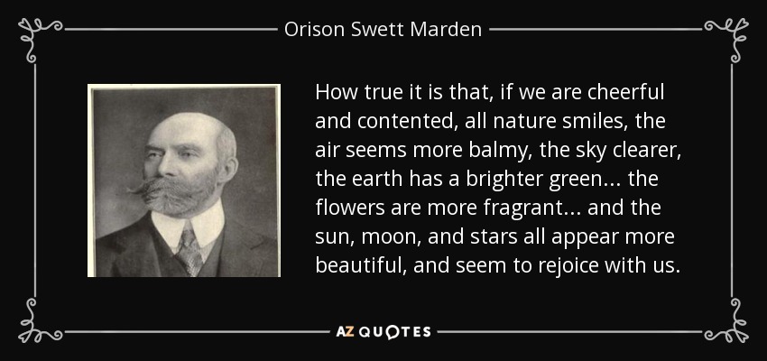 How true it is that, if we are cheerful and contented, all nature smiles, the air seems more balmy, the sky clearer, the earth has a brighter green... the flowers are more fragrant... and the sun, moon, and stars all appear more beautiful, and seem to rejoice with us.