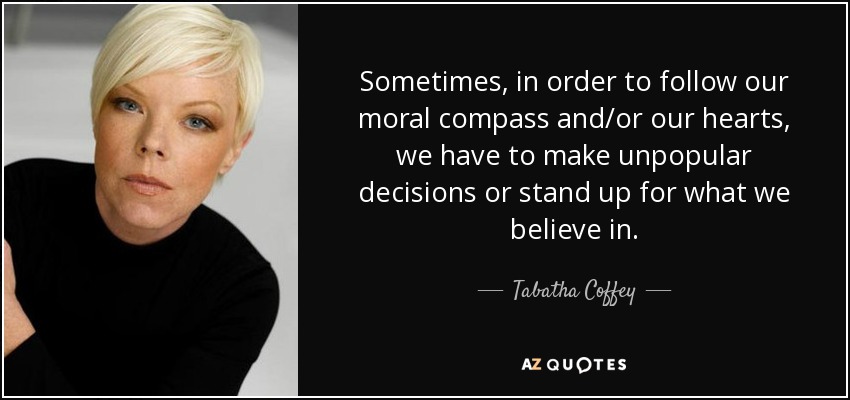 Sometimes, in order to follow our moral compass and/or our hearts, we have to make unpopular decisions or stand up for what we believe in.