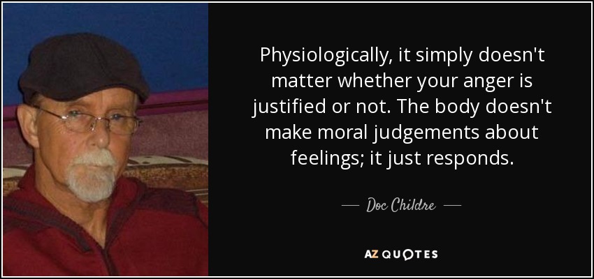 Physiologically, it simply doesn't matter whether your anger is justified or not. The body doesn't make moral judgements about feelings; it just responds.