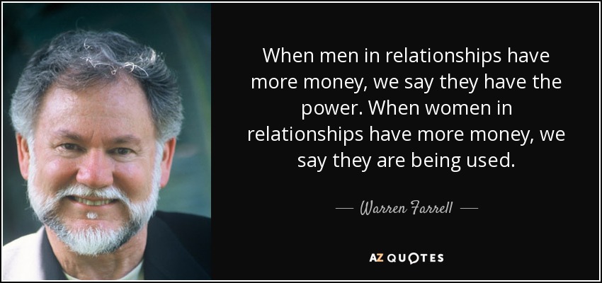 When men in relationships have more money, we say they have the power. When women in relationships have more money, we say they are being used.