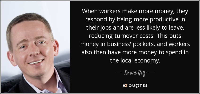 When workers make more money, they respond by being more productive in their jobs and are less likely to leave, reducing turnover costs. This puts money in business' pockets, and workers also then have more money to spend in the local economy.