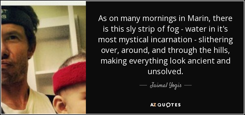 As on many mornings in Marin, there is this sly strip of fog - water in it's most mystical incarnation - slithering over, around, and through the hills, making everything look ancient and unsolved.