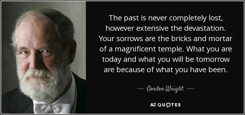 The past is never completely lost, however extensive the devastation. Your sorrows are the bricks and mortar of a magnificent temple. What you are today and what you will be tomorrow are because of what you have been.