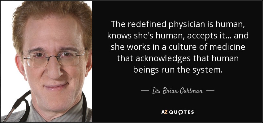 The redefined physician is human, knows she's human, accepts it ... and she works in a culture of medicine that acknowledges that human beings run the system.