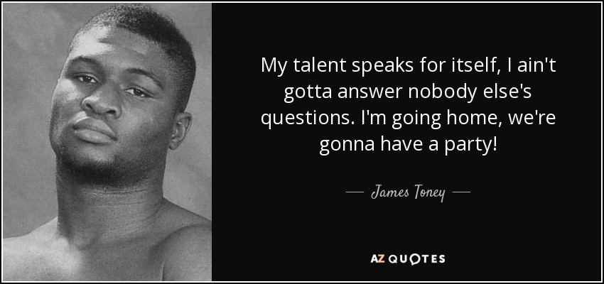 My talent speaks for itself, I ain't gotta answer nobody else's questions. I'm going home, we're gonna have a party!