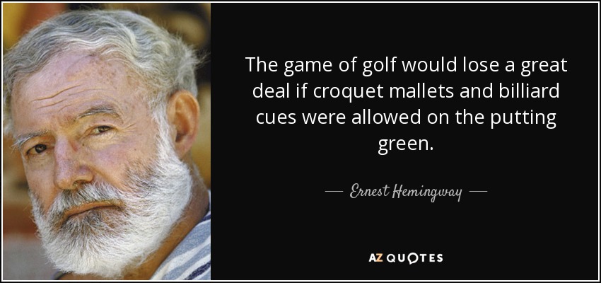 The game of golf would lose a great deal if croquet mallets and billiard cues were allowed on the putting green.
