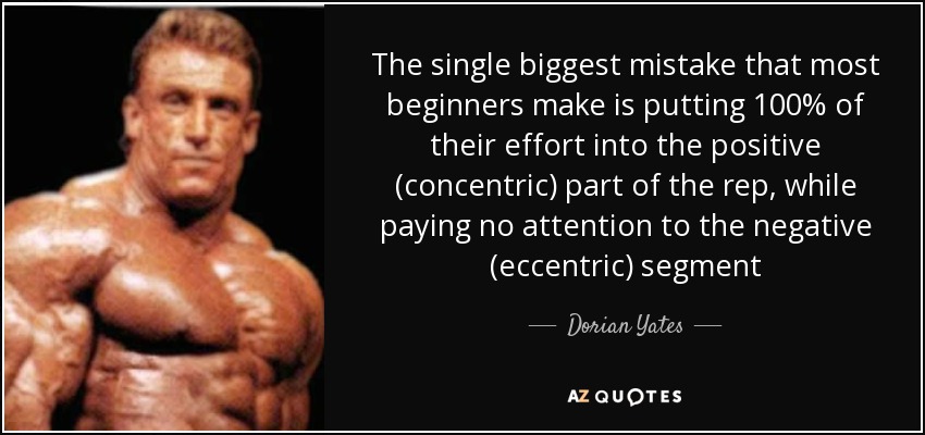 The single biggest mistake that most beginners make is putting 100% of their effort into the positive (concentric) part of the rep, while paying no attention to the negative (eccentric) segment
