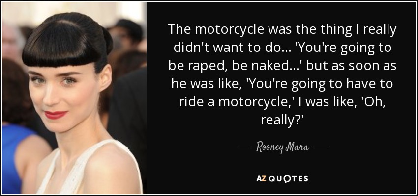 The motorcycle was the thing I really didn't want to do... 'You're going to be raped, be naked...' but as soon as he was like, 'You're going to have to ride a motorcycle,' I was like, 'Oh, really?'