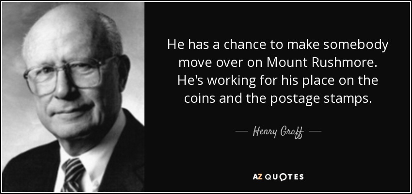 He has a chance to make somebody move over on Mount Rushmore. He's working for his place on the coins and the postage stamps.