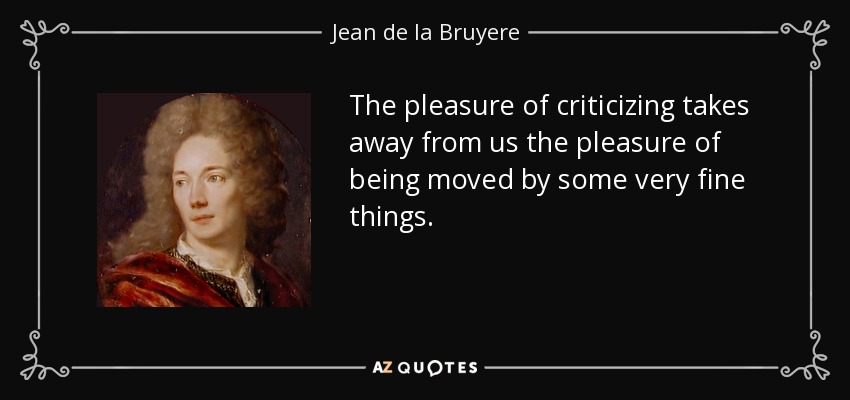 The pleasure of criticizing takes away from us the pleasure of being moved by some very fine things.